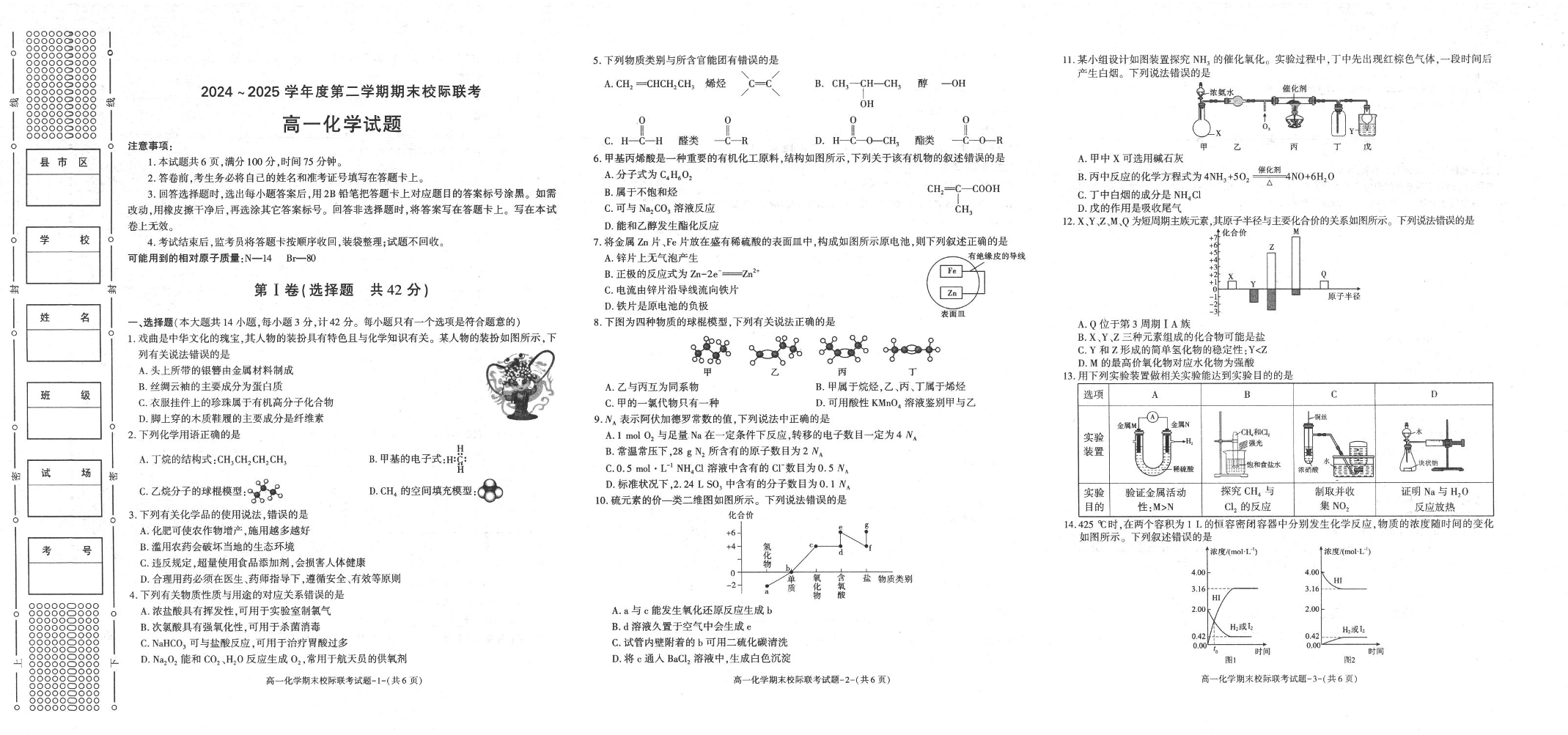 高一化学+答案--陕西省汉中市2024-2025学年高一下学期期末校际联考