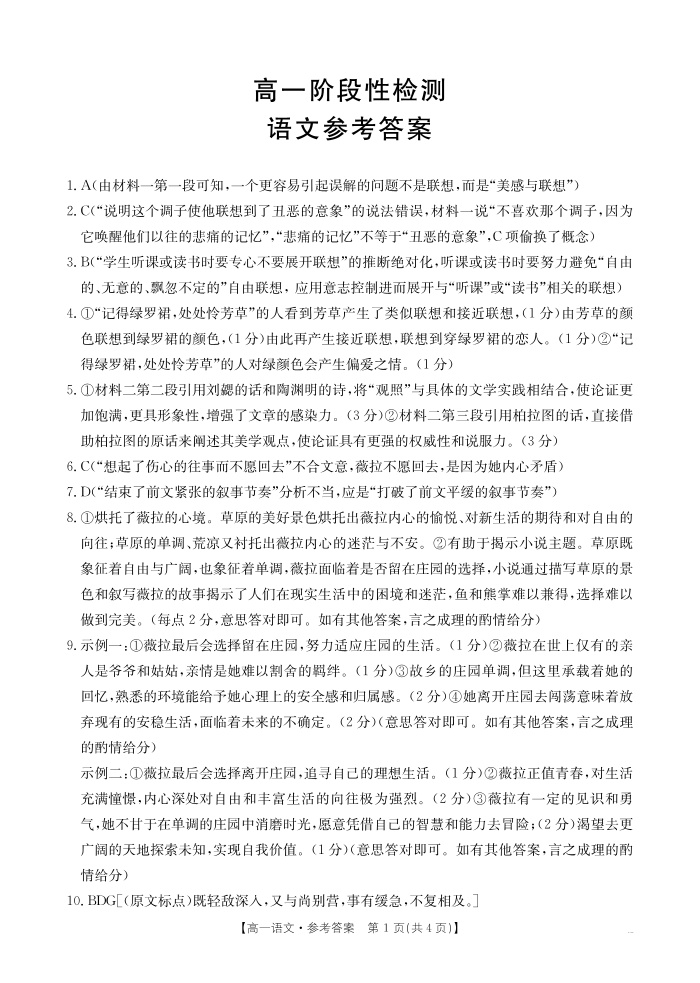 高一语文答案--甘肃省天水市2024-2025学年高一下学期期末阶段性检测