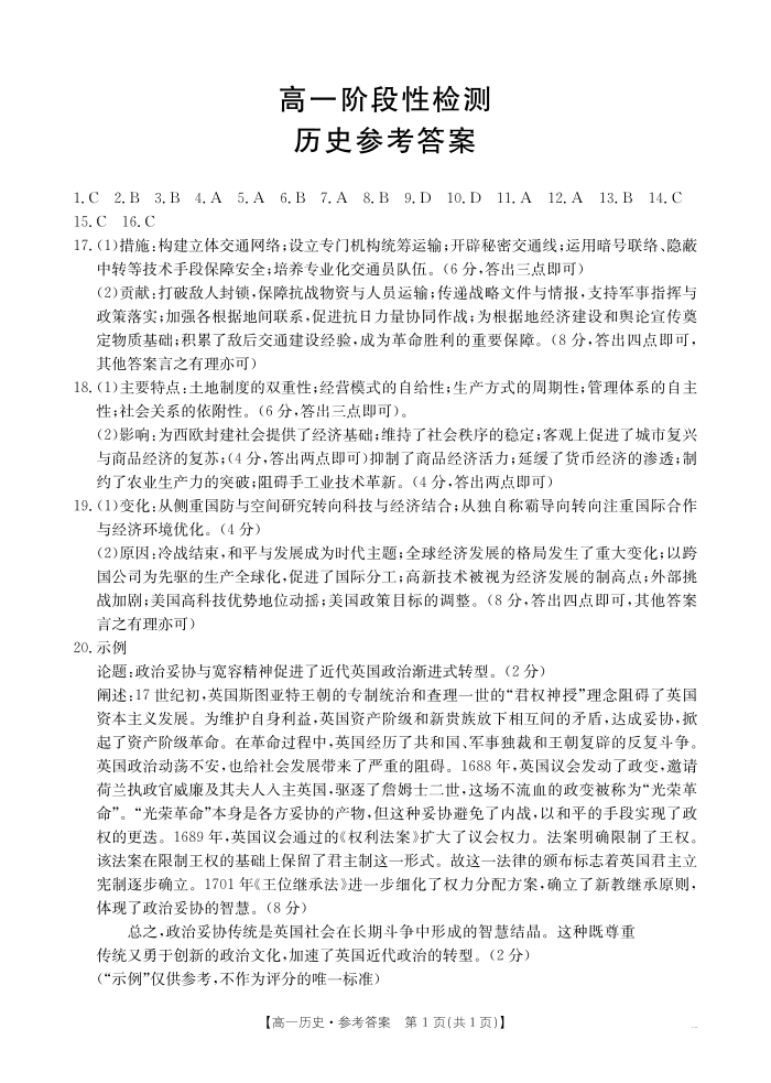 高一历史答案--甘肃省天水市2024-2025学年高一下学期期末阶段性检测