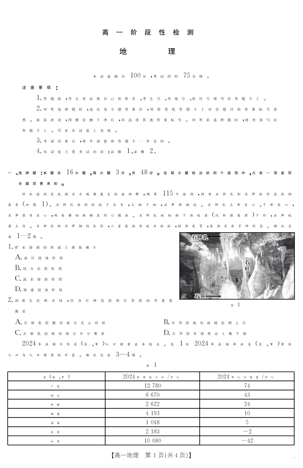 高一地理--甘肃省天水市2024-2025学年高一下学期期末阶段性检测