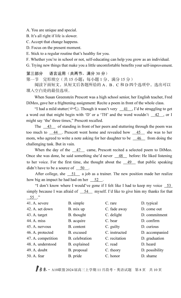 安徽省A10联盟2024届高三上学期11月段考英语