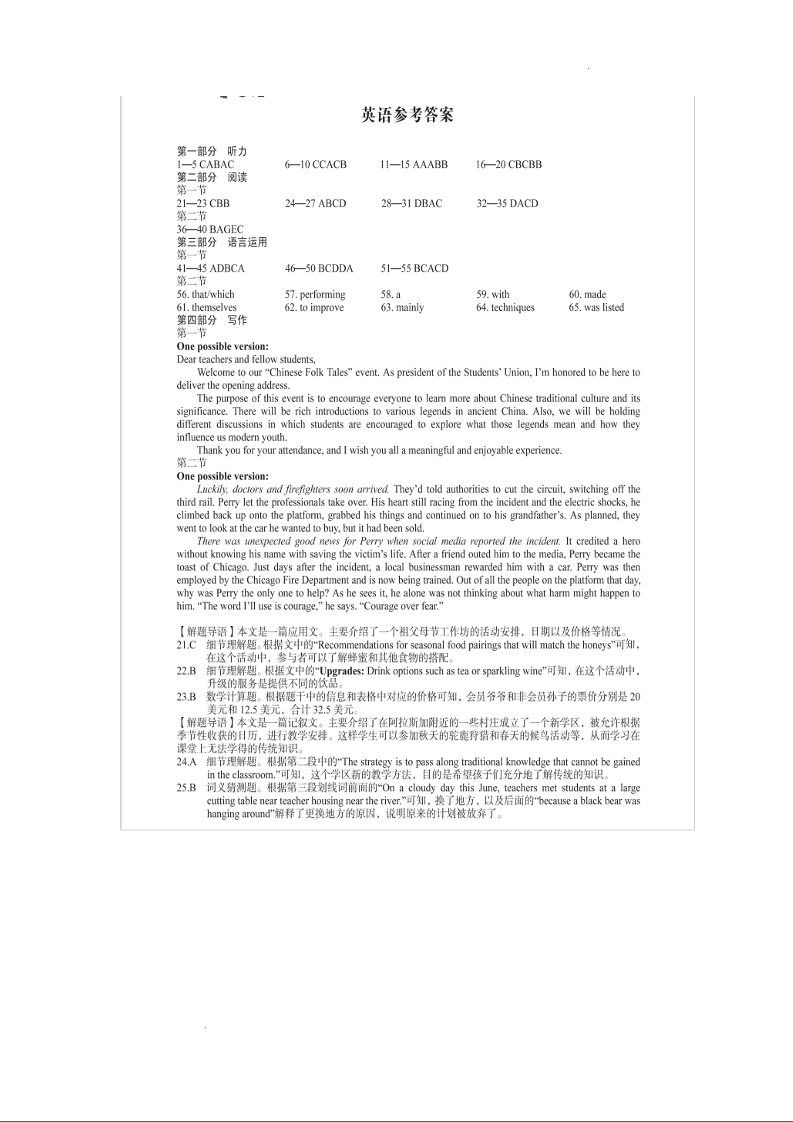 安徽省A10联盟2024届高三上学期11月段考英语答案