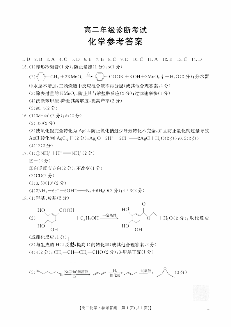 高二化学答案--甘肃省庆阳市2024-2025学年高二下学期期末诊断