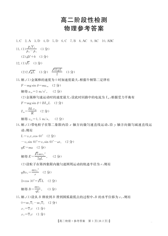 高二物理答案--甘肃省天水市2024-2025学年高二下学期期末阶段性检测