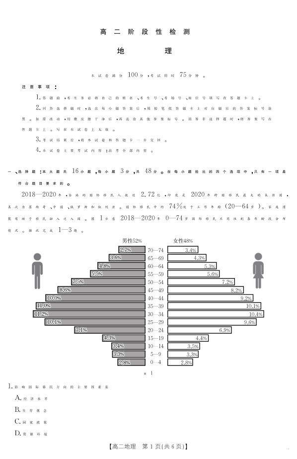 高二地理--甘肃省天水市2024-2025学年高二下学期期末阶段性检测