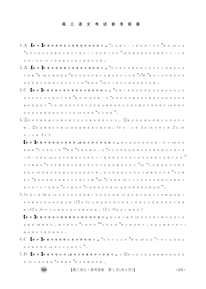 福建省2024届高三11月金太阳联考语文答案