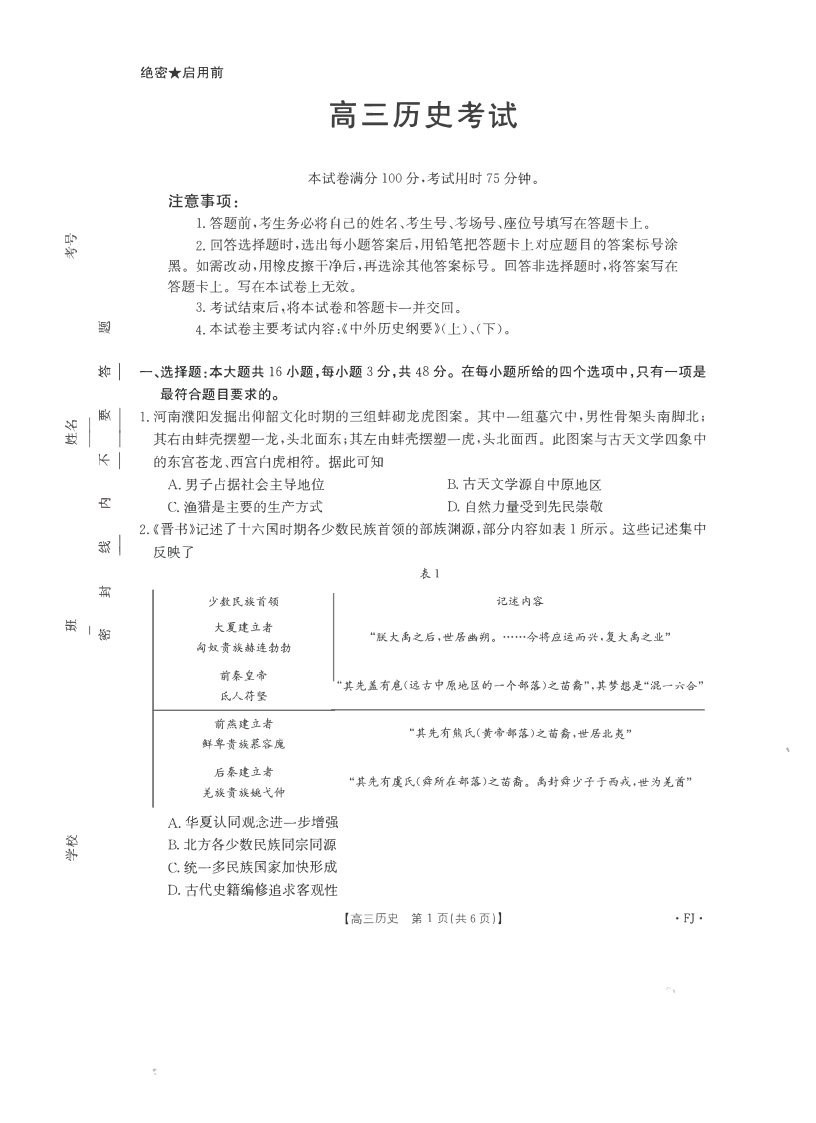 福建省2024届高三11月金太阳联考历史
