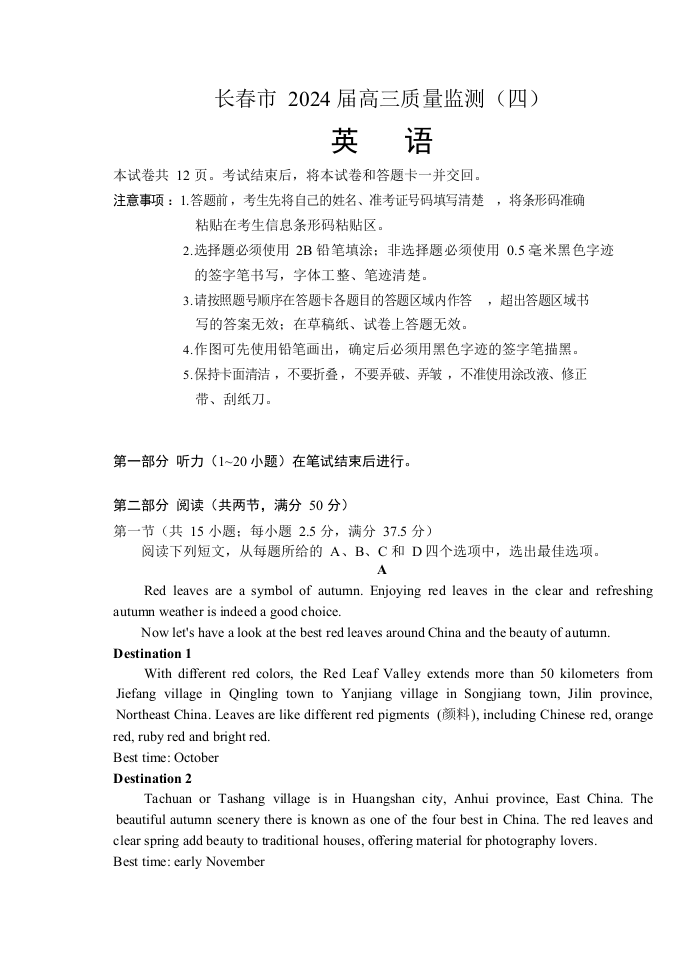 吉林省长春市2024届高三下学期四模考试英语