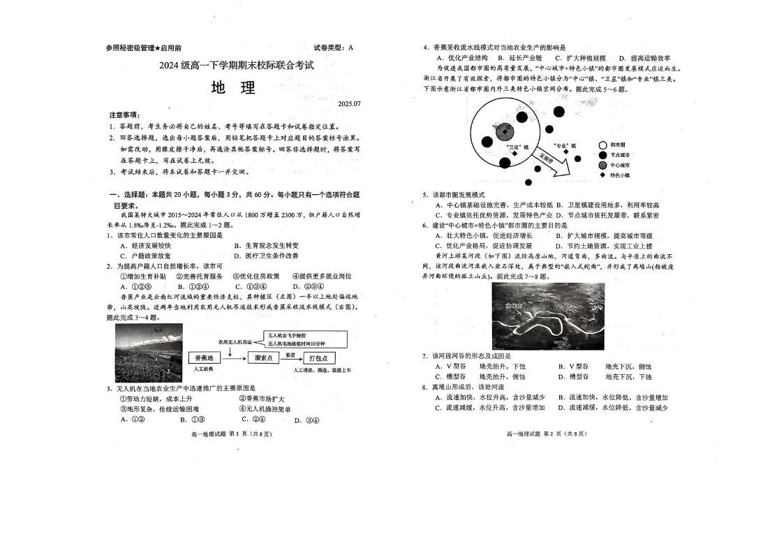 高一地理--山东省日照市部分学校2024-2025学年高一下学期期末校际联考