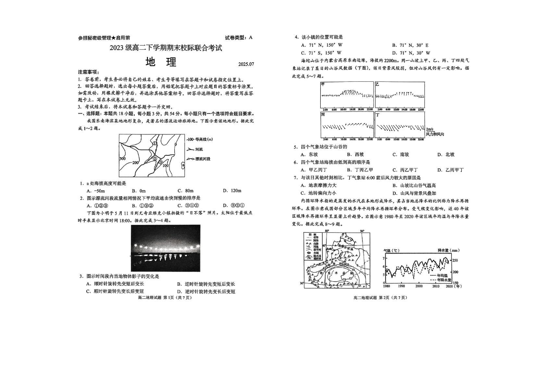 高二地理+答案--山东省日照市部分学校2024-2025学年高二下学期期末校际联考