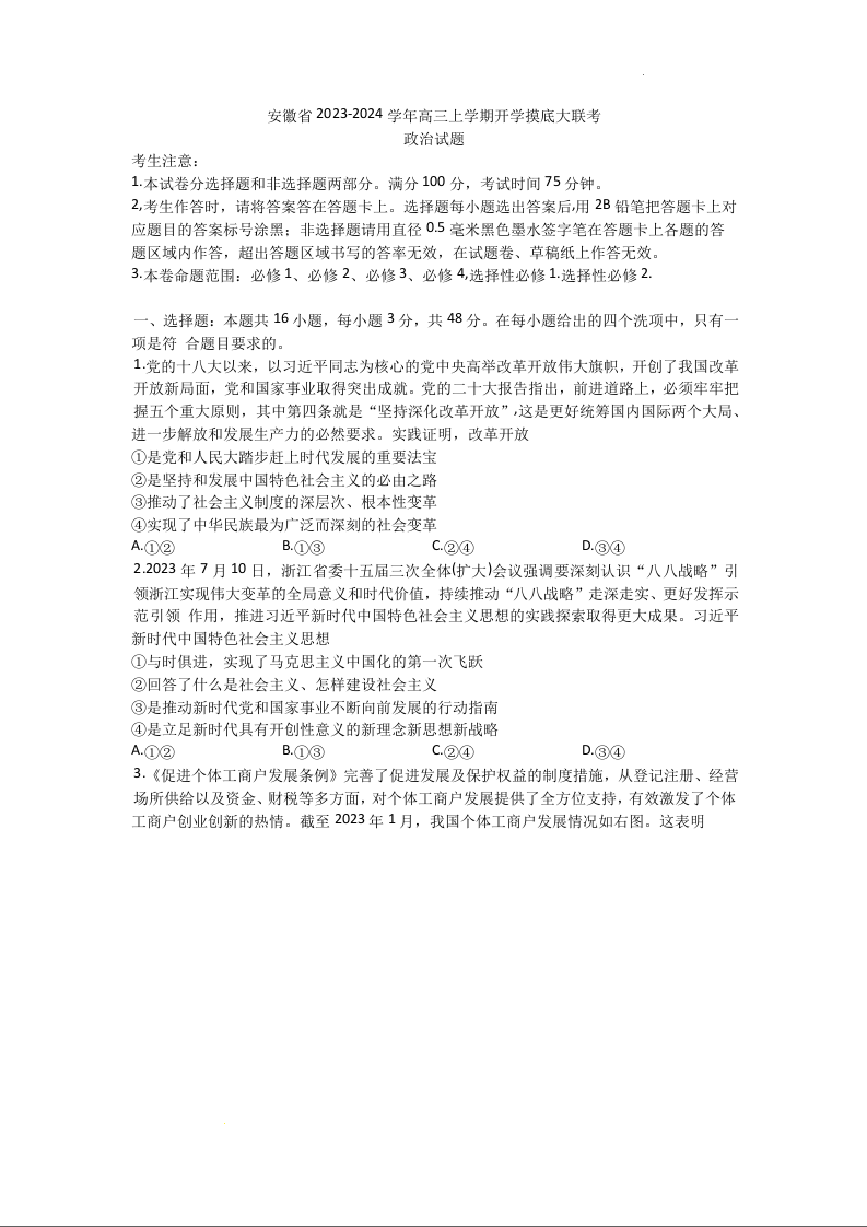 安徽省皖南八校2024届高三上学期8月摸底考试政治