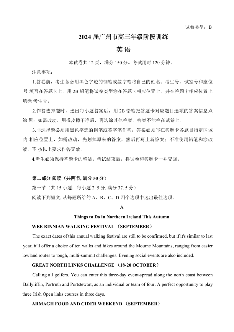 广东省广州市部分学校2024届高三8月阶段训练英语