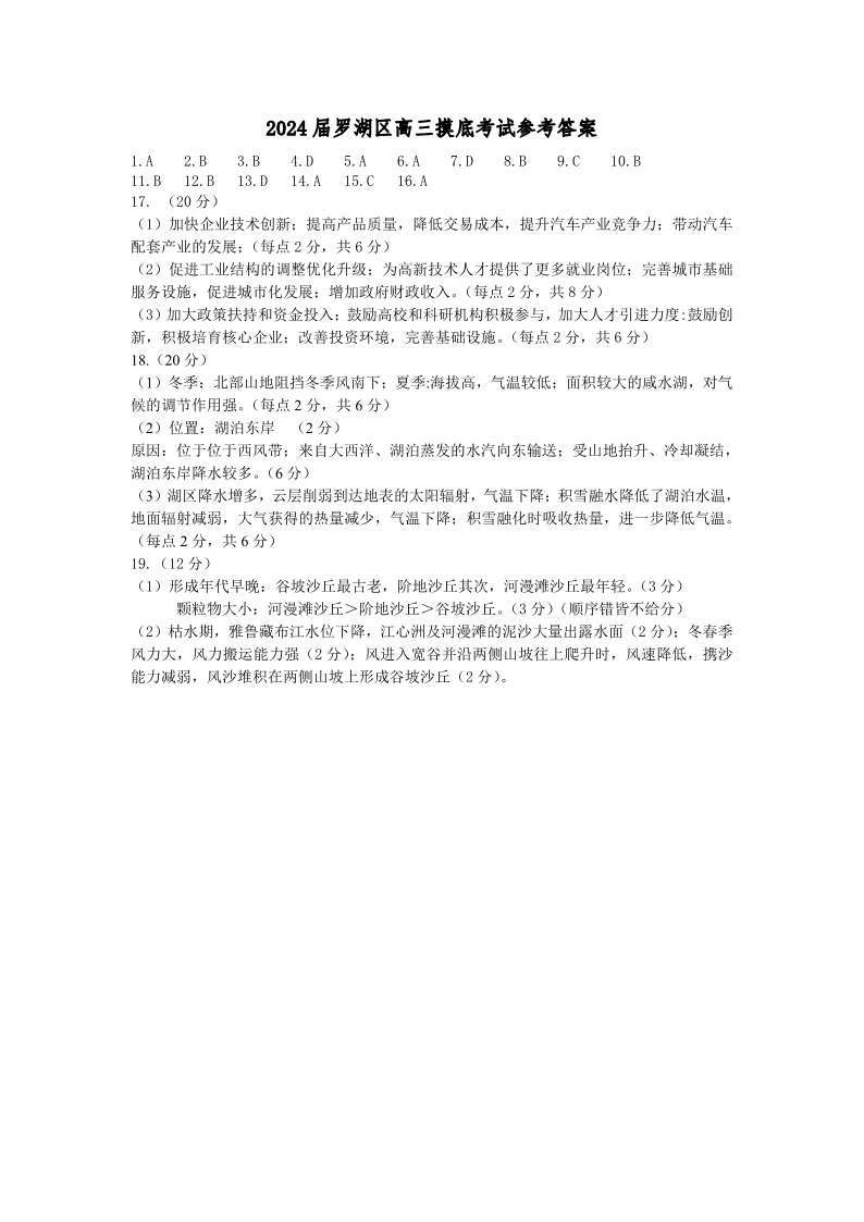 广东省深圳市罗湖区2024届高三上学期开学模拟考(质量检测一)地理答案