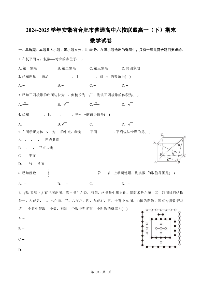 高一数学+答案--安徽省合肥市六校联盟 2024-2025 学年高一下学期期末联考