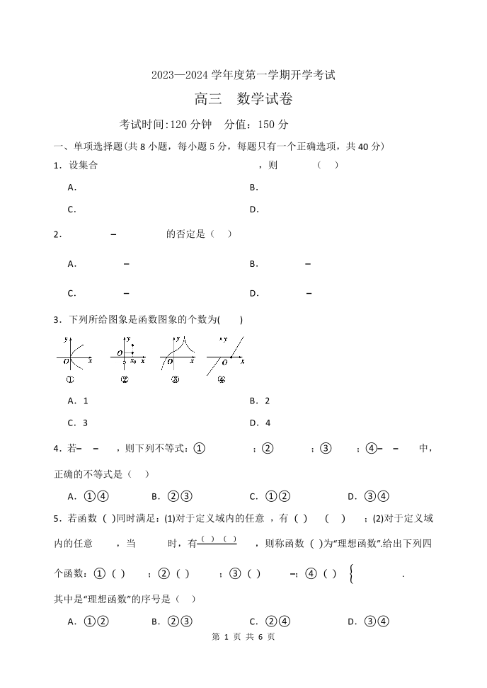 黑龙江省牡丹江市第三高级中学2024届高三上学期开学考试数学