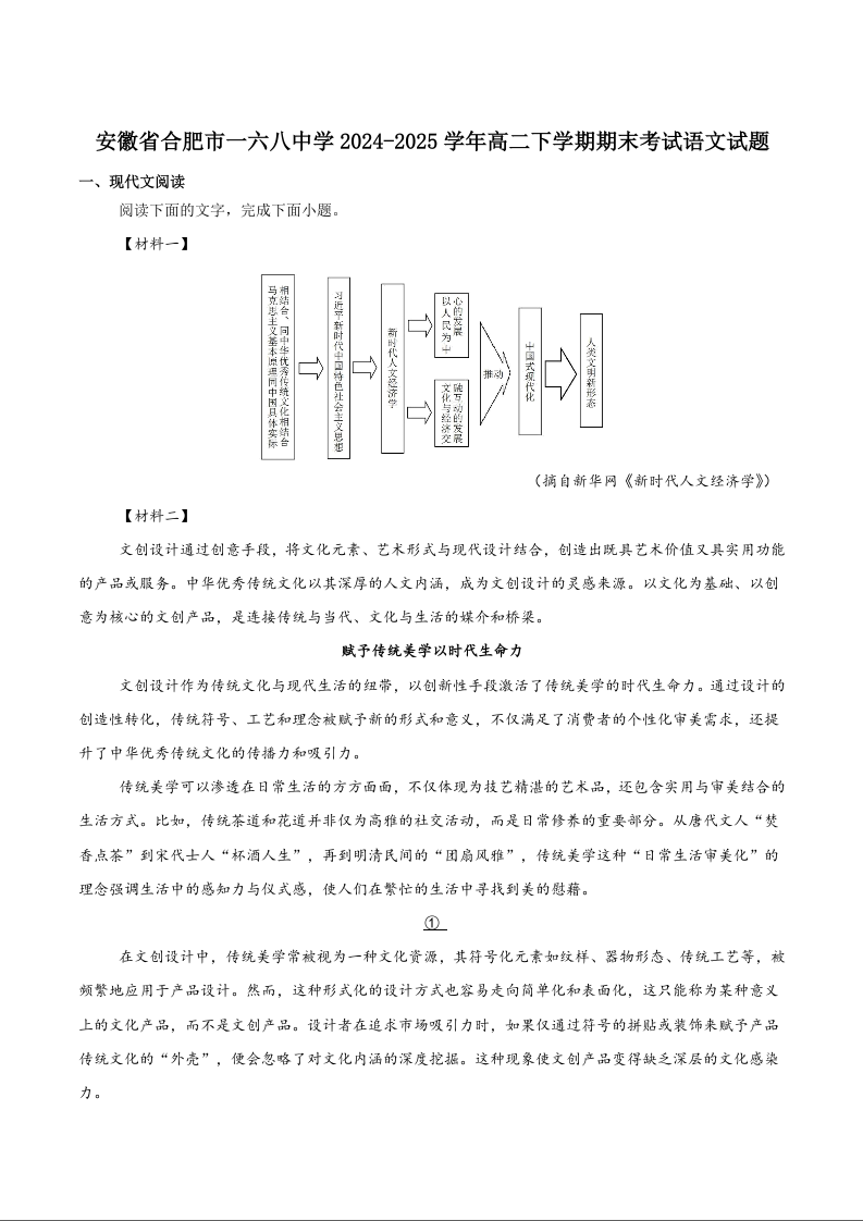 高二语文+答案--安徽省合肥市合肥一六八中学2024-2025学年高二下学期期末考试
