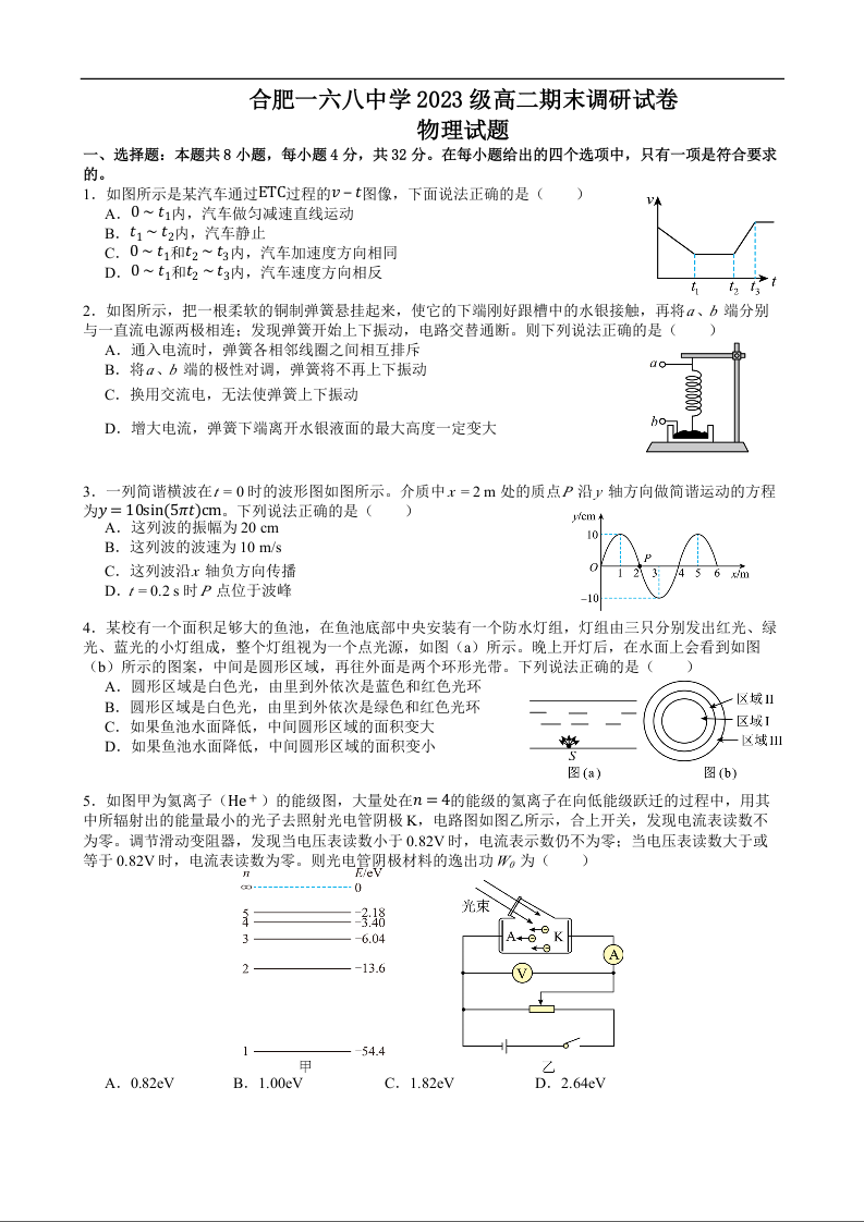 高二物理--安徽省合肥市合肥一六八中学2024-2025学年高二下学期期末考试