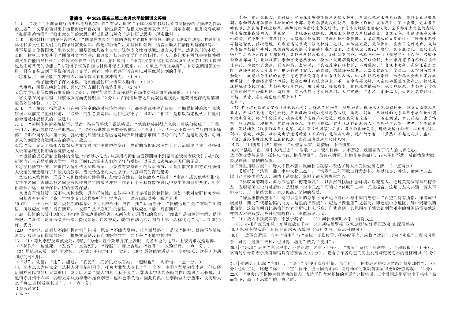 湖南省常德市第一中学2024届高三上学期第二次月考语文答案
