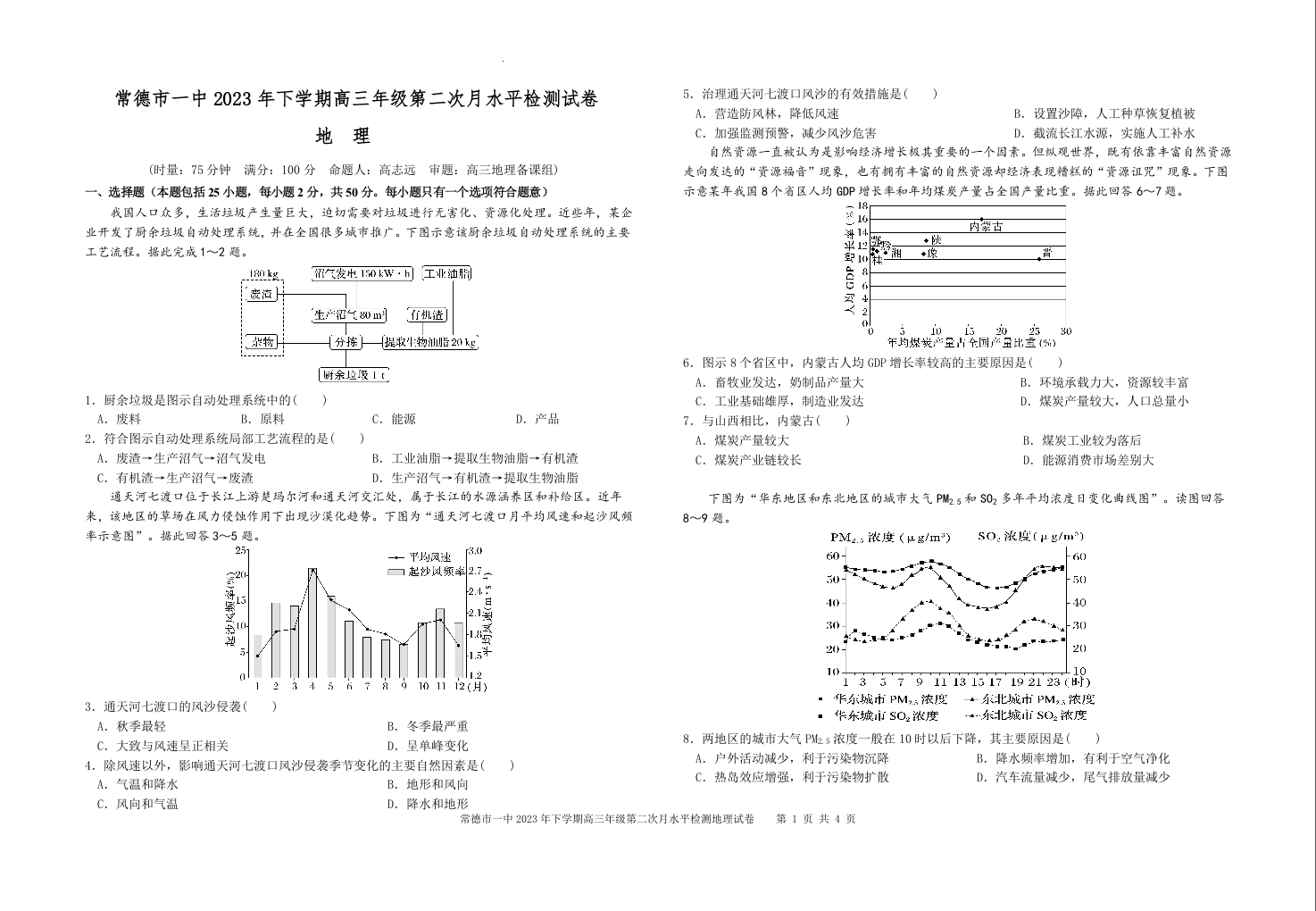 湖南省常德市第一中学2024届高三上学期第二次月考地理