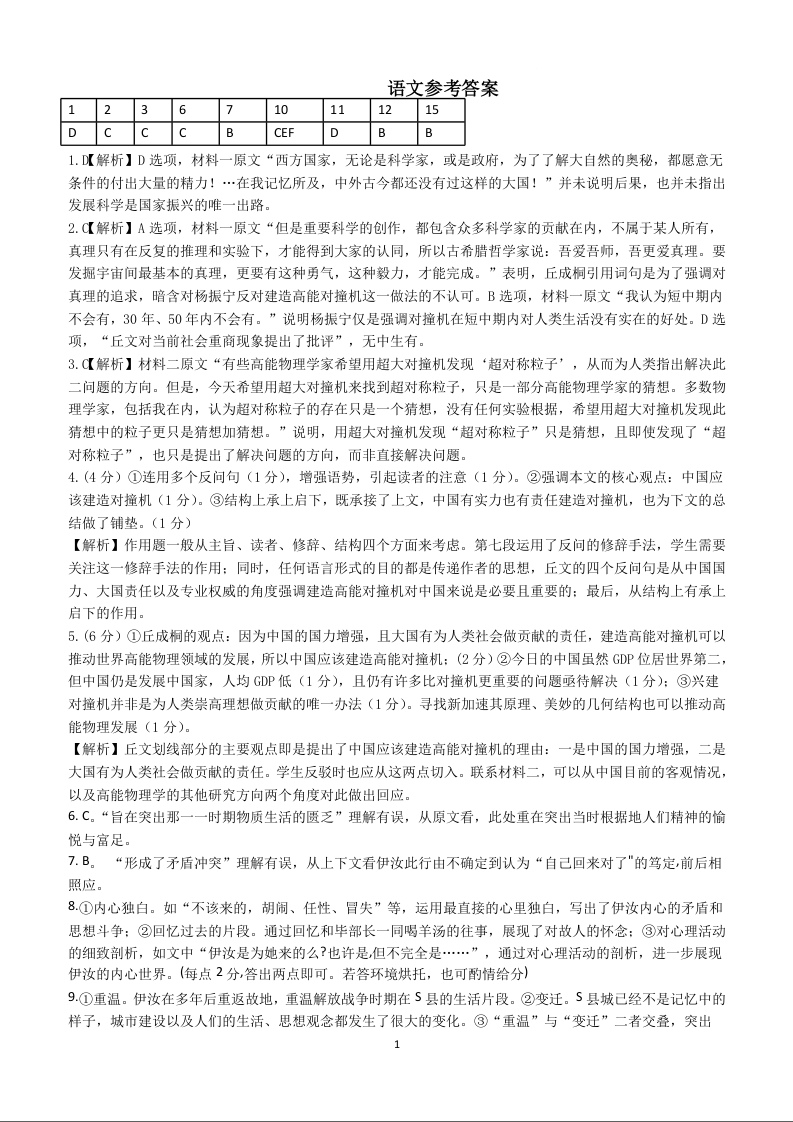 湖南省衡阳市第八中学2024届高三上学期开学检测语文答案