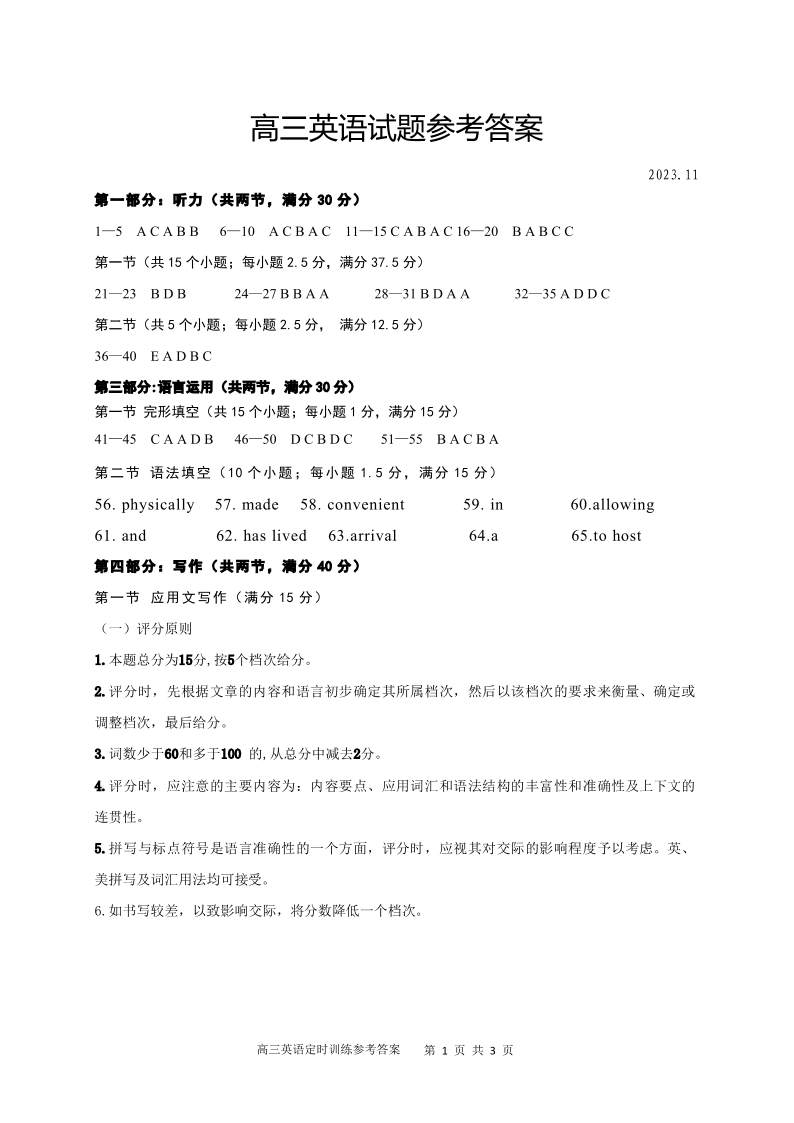 山东省枣庄市滕州市2024届高三上学期期中考试英语答案