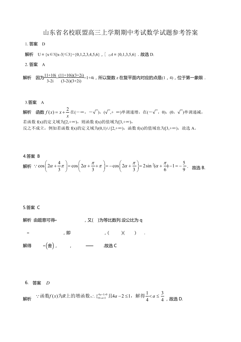 山东省名校考试联盟2024届高三上学期11月期中检测(济南期中)数学答案