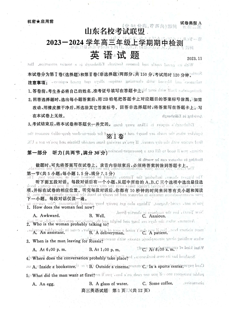 山东省名校考试联盟2024届高三上学期11月期中检测(济南期中)英语