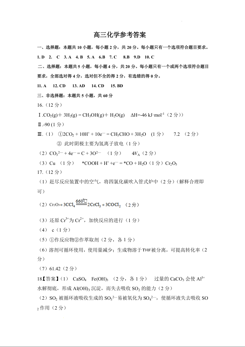 山东省名校考试联盟2024届高三上学期11月期中检测(济南期中)化学