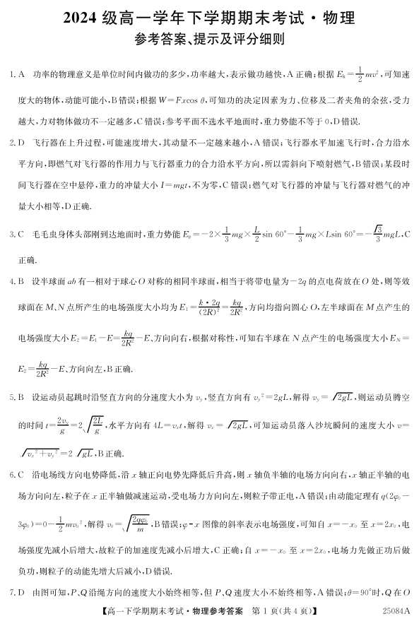 高一物理答案--黑龙江省龙东联盟2024-2025学年高一下学期期末考试