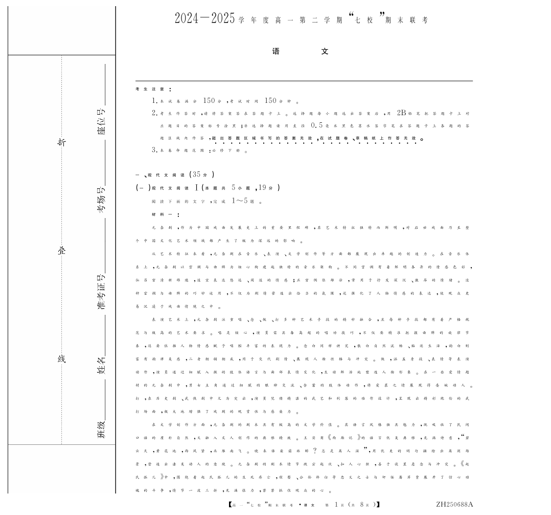 高一语文--陕西省安康市七校2024-2025学年高一下学期7月期末联考
