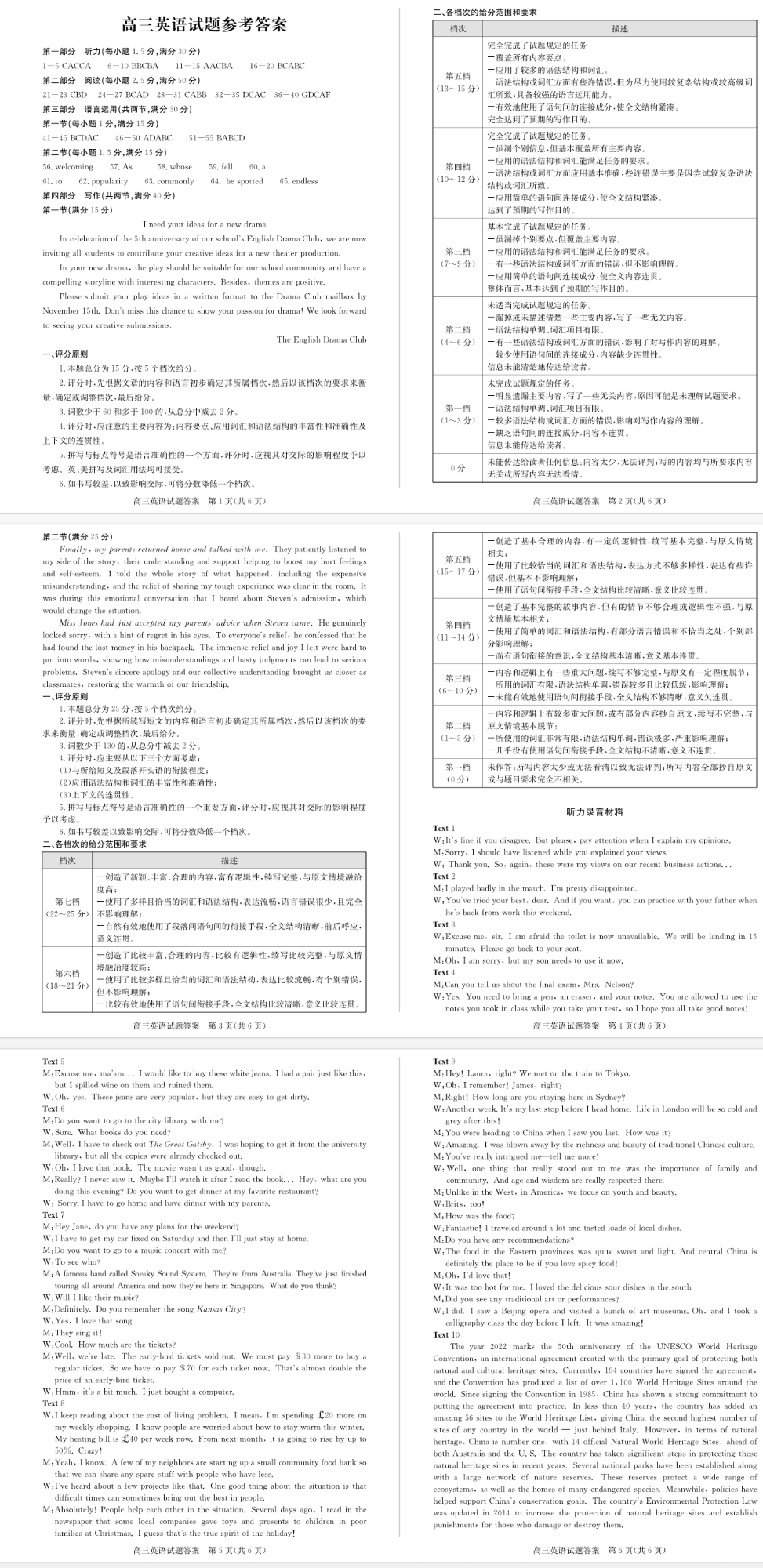 山东省德州市优高联考2024届高三上学期期中考试英语答案