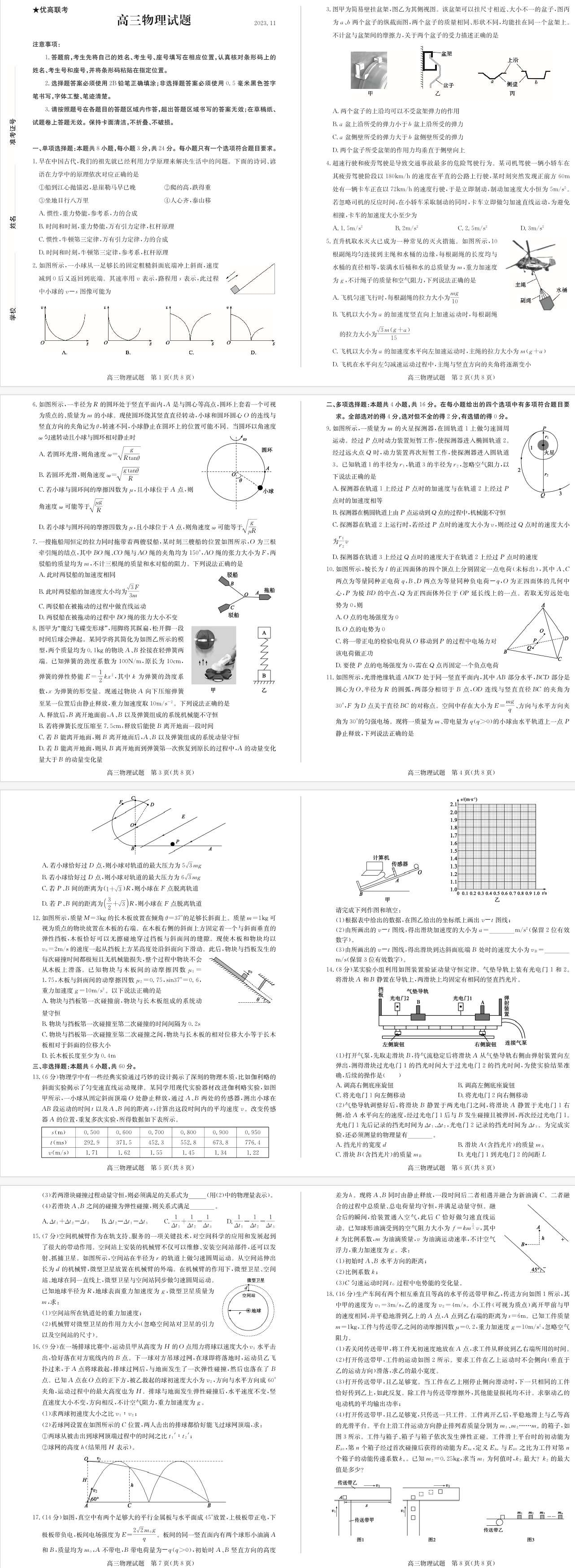 山东省德州市优高联考2024届高三上学期期中考试物理