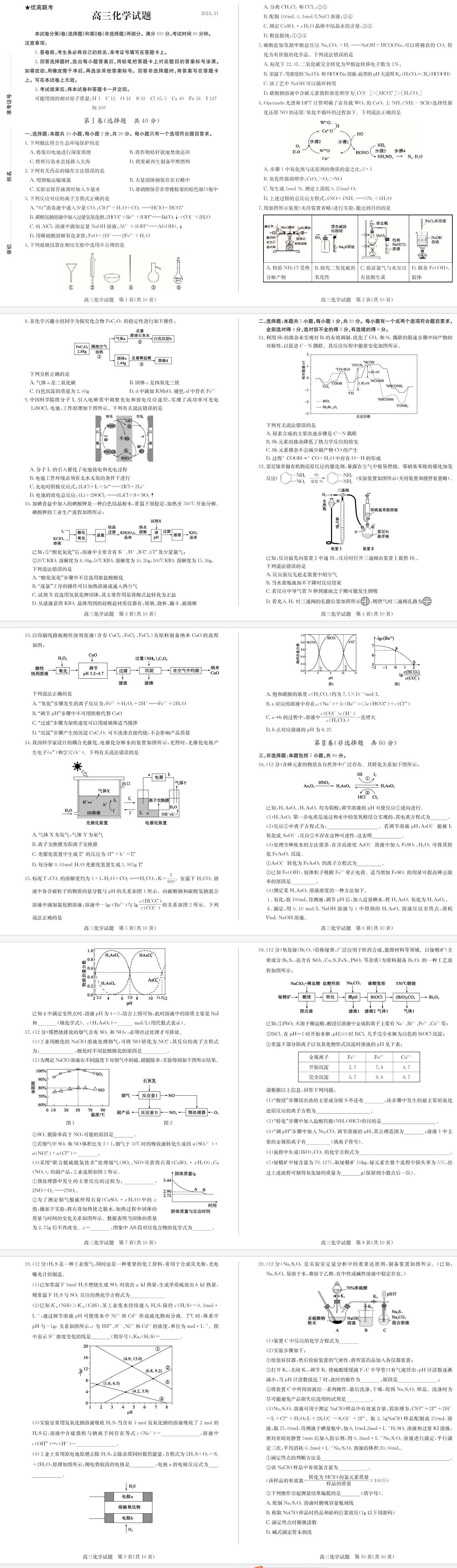 山东省德州市优高联考2024届高三上学期期中考试化学