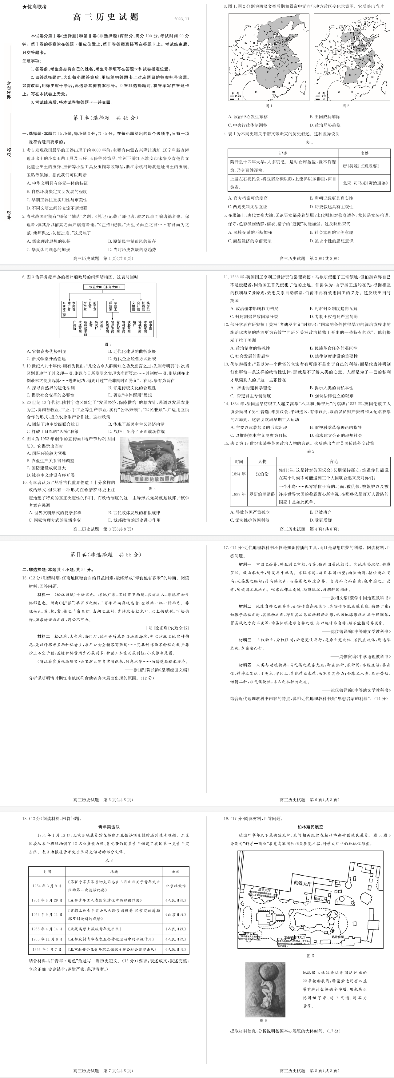 山东省德州市优高联考2024届高三上学期期中考试历史