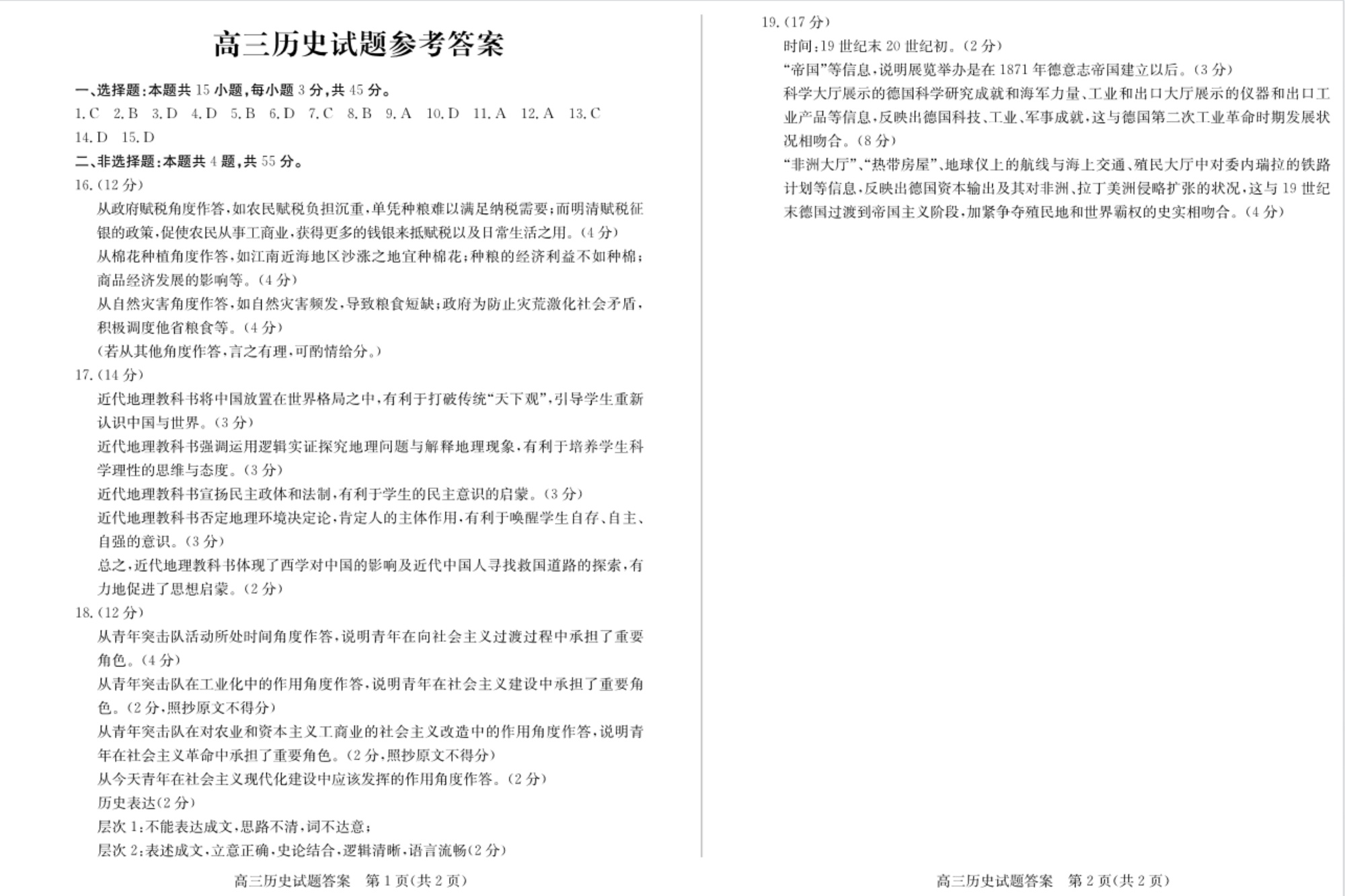 山东省德州市优高联考2024届高三上学期期中考试历史答案