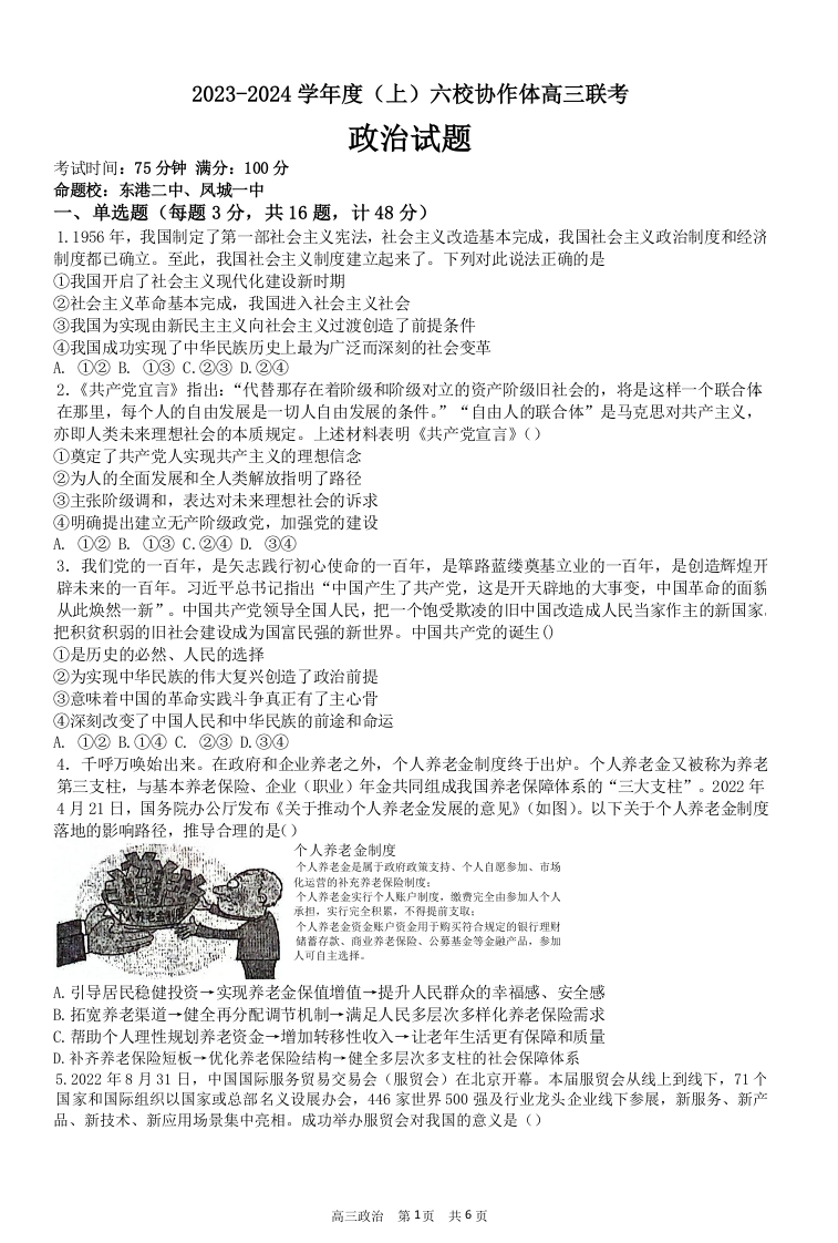 辽宁省六校协作体2024届高三上学期11月期中考试政治