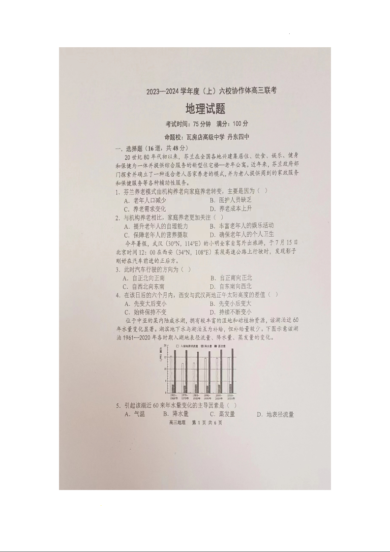 辽宁省六校协作体2024届高三上学期11月期中考试地理