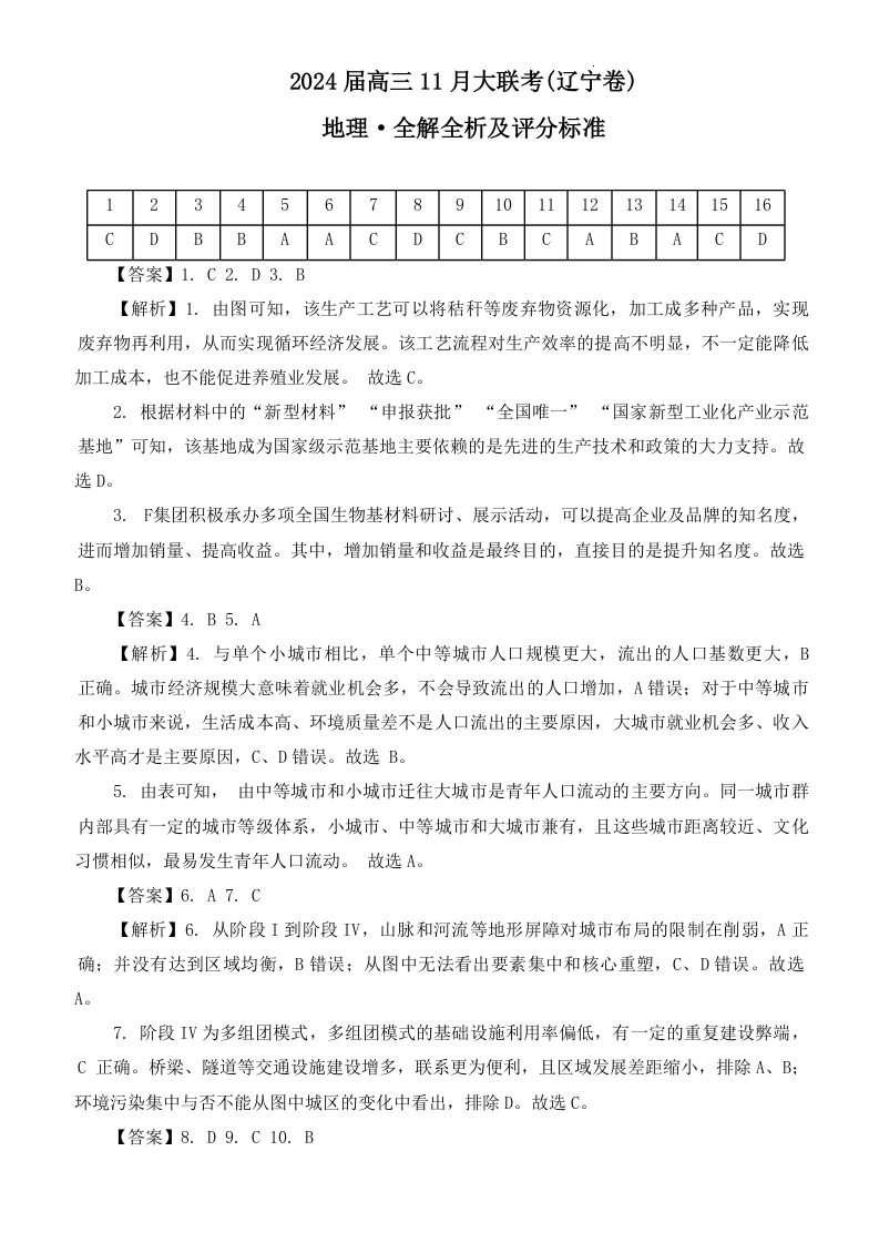 辽宁省2024届高三11月半期大联考(辽宁专用)地理答案