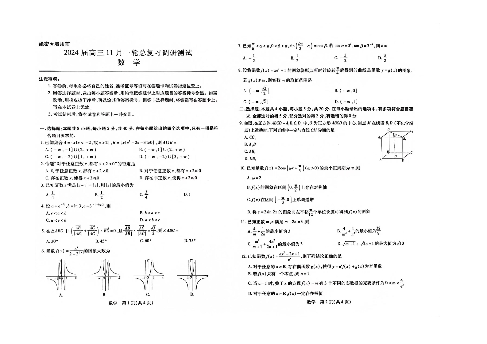 江西省稳派2024届高三上学期11月一轮总复习调研测试数学