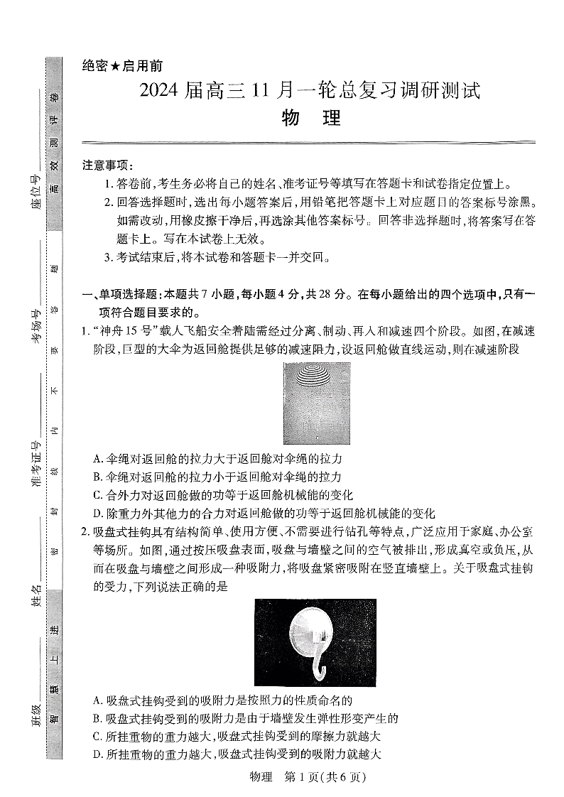 江西省稳派2024届高三上学期11月一轮总复习调研测试物理