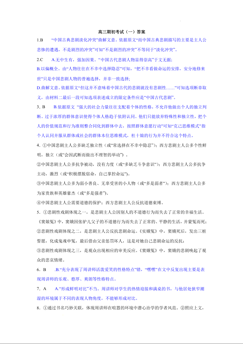 江苏省徐州市沛县2024届高三上学期期初模拟考(一)语文答案