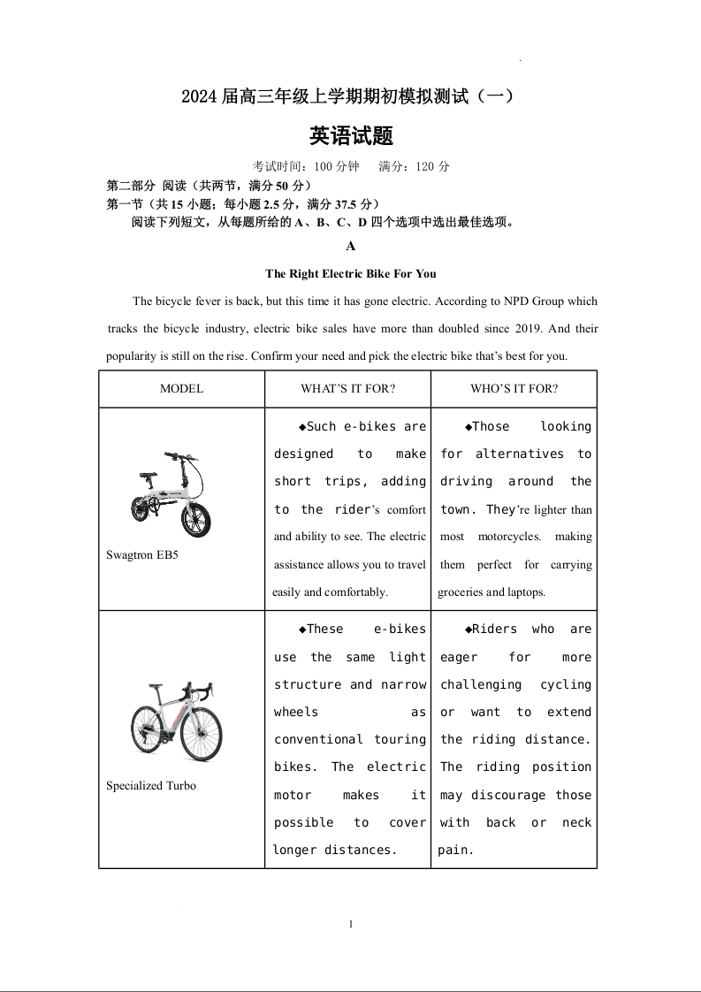 江苏省徐州市沛县2024届高三上学期期初模拟考(一)英语