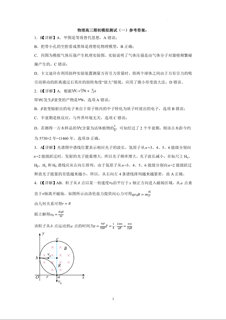 江苏省徐州市沛县2024届高三上学期期初模拟考(一)物理答案