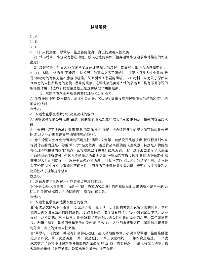 江苏省扬州市2024届高三上学期期初考试模拟语文答案