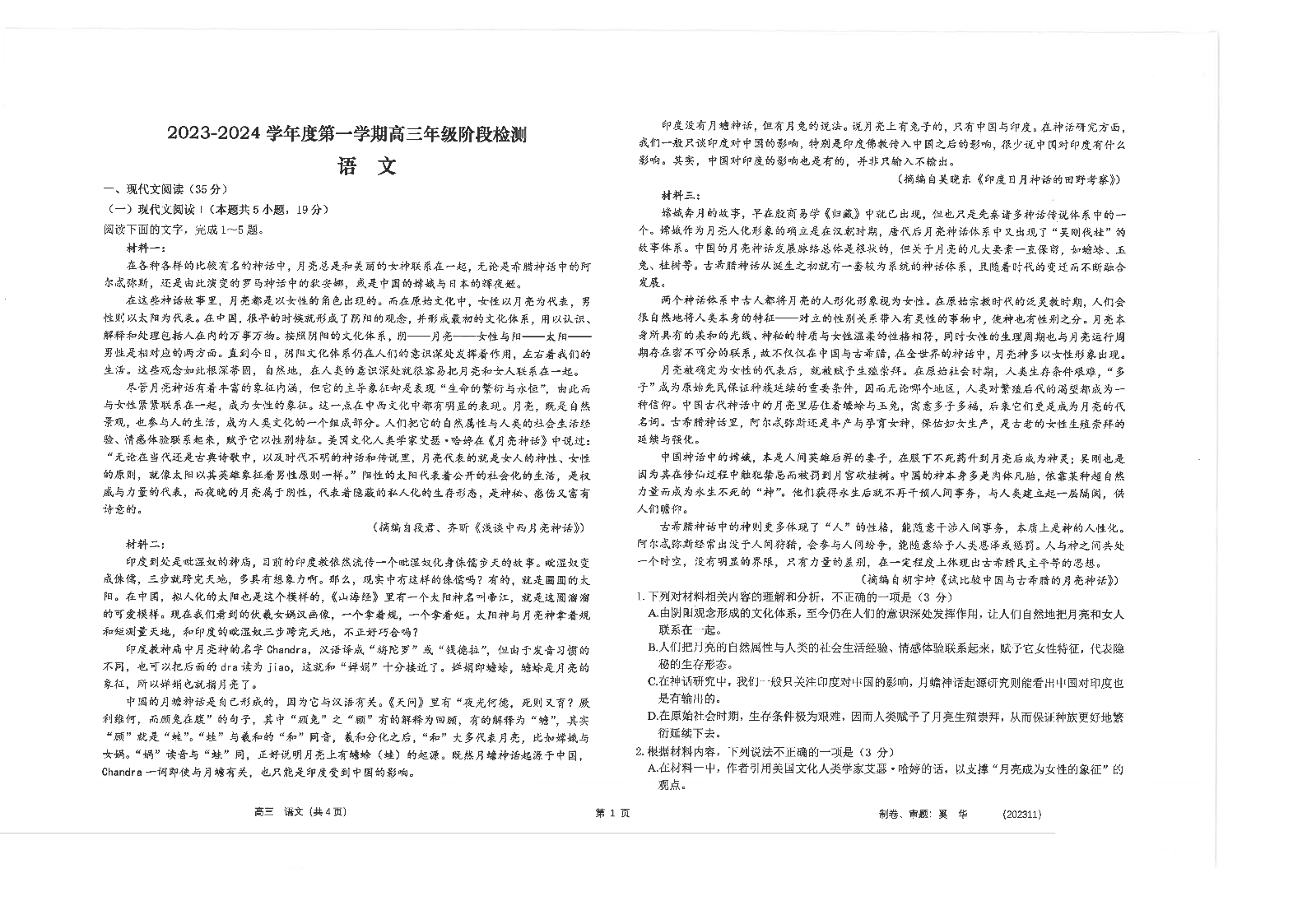 江苏省南通市海安市2024届高三上学期11月期中考试语文+答案