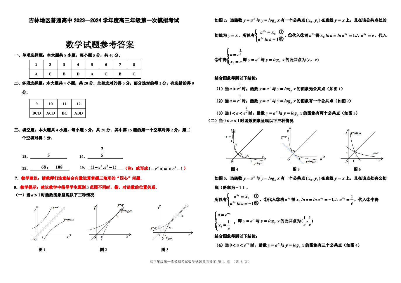 吉林省吉林市2024届高三上学期第一次模拟考试数学答案
