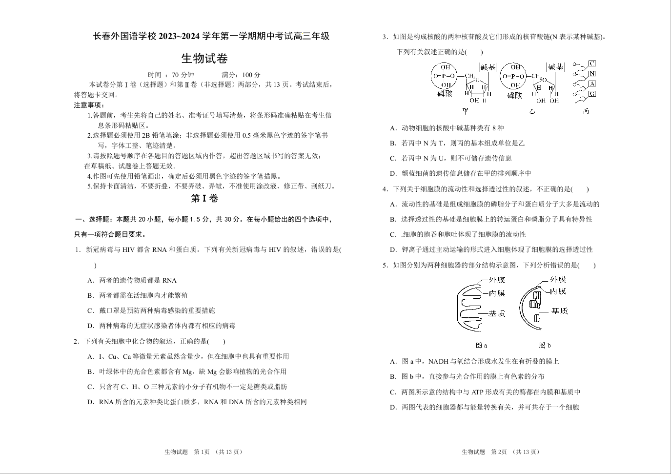 吉林省长春市外国语学校2024届高三上学期期中考试生物+答案