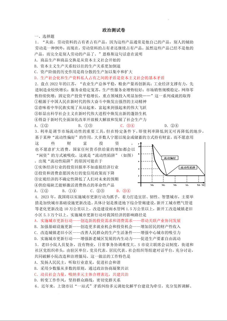 江苏省镇江第一中学2024届高三上学期期初阶段考政治答案