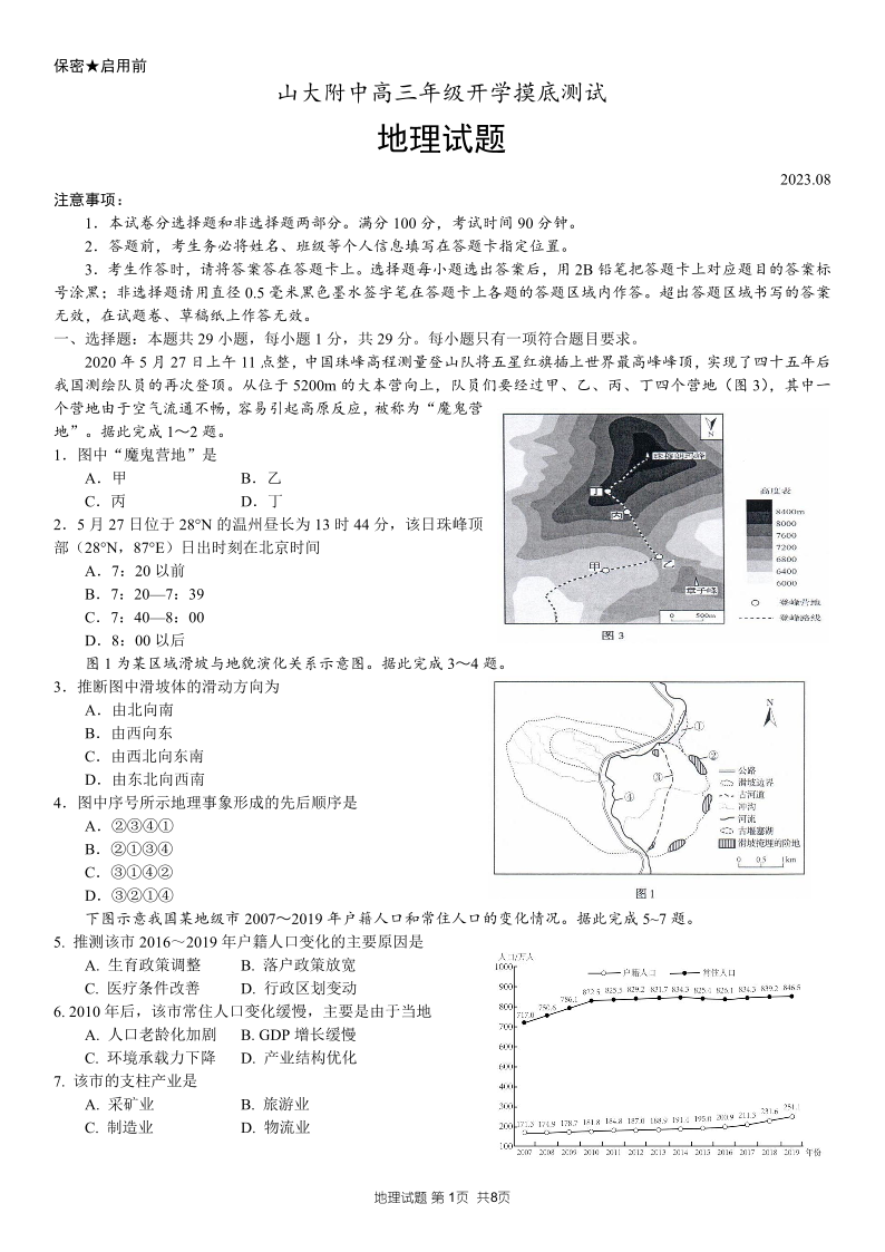 山东省菏泽市定陶区明德学校(山大附中实验学校)2024届高三上学期开学考地理+答案
