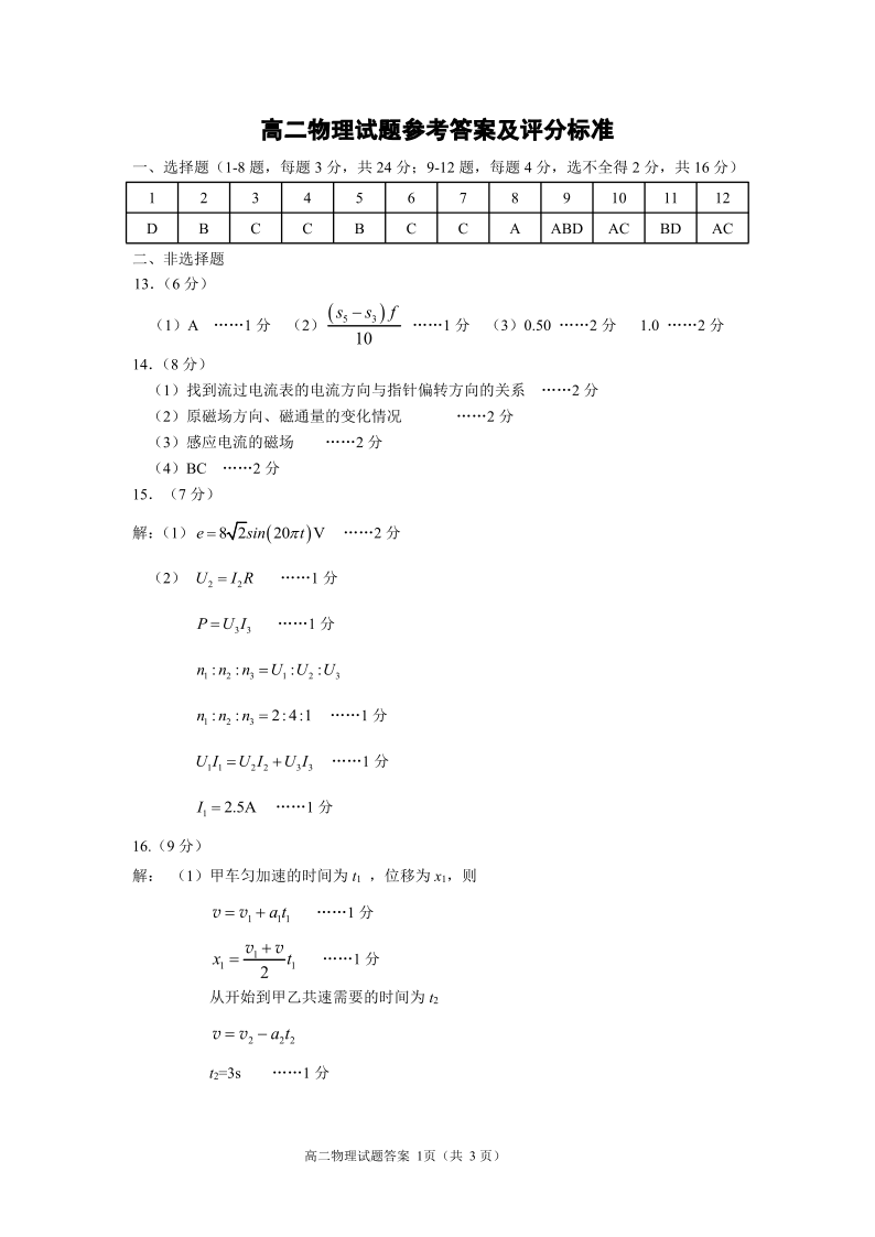 山东省威海市2024届下学期期末考试物理答案